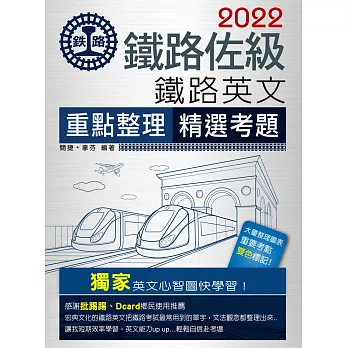 準備鐵路英文科的秘訣在於主題式的學習文法,系統性的練習試題並累積字彙,在練習中增加語感及培養英文閱讀習慣,於考場上必能找到學習英文的熟悉感,解答試題也能得心應手,取得高分!本書以協助讀者在有限時間內可以輕鬆掌握鐵路特考中英語科解題技巧為前提,提供讀者多樣的記憶訣竅與快速入門的重點分析。